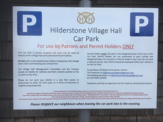 For example, Stone Ramblers regularly ask for permission to park cars during the day so that they can use the many footpaths in and around Hilderstone. Every time that they do this, they ask permission and leave us a reasonable donation for parking.
